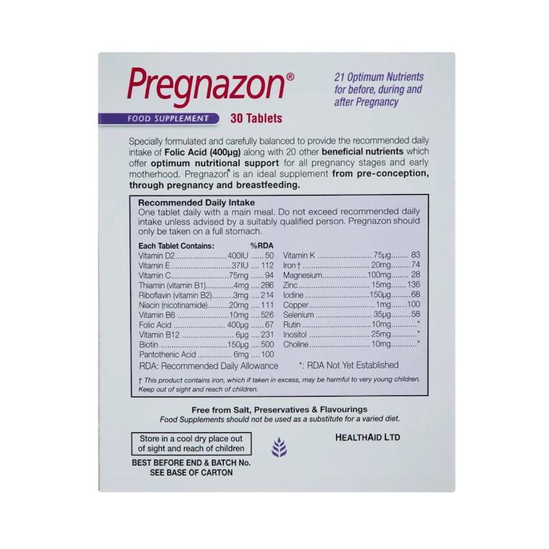 خرید قرص پرگنازون هلث اید Pregnazon بستۀ ۳۰ عددی