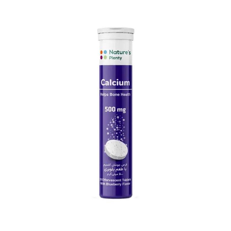 خرید قرص جوشان کلسیم 500 میلی گرم نیچرز پلنتی با طعم بلوبری بستۀ 20 عددی