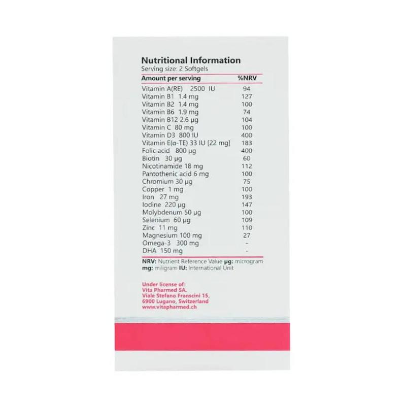 سافت ژل Pregmom با تأمین ویتامینهای ضروری شامل ویتامینهای گروه B، ویتامین D، ویتامین C، آهن، کلسیم، روی و ید نیازهای بدن مادر در دوران حساس بارداری را پوشش میدهد. این ویتامینها و مواد معدنی باعث تقویت سیستم ایمنی، بهبود سوخت و ساز و سلامت استخوانها و دندانها مادر شده و رشد طبیعی و سلامت جنین را تضمین میکنند.