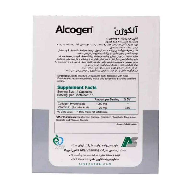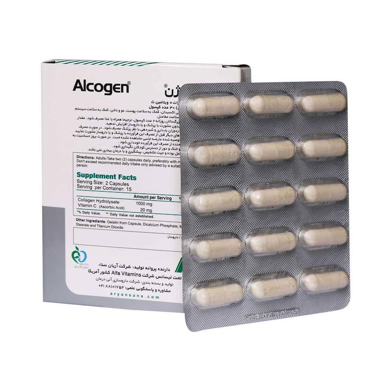 کپسول آلکوژن آلفا ویتامینز (Alpha Vitamins Alcojen) یک مکمل تخصصی برای تقویت پوست، مو، ناخن و مفاصل است که با ترکیب کلاژن هیدرولیز شده و ویتامین C، به بهبود ساختار بافتهای بدن کمک میکند. این محصول که با دو نام کپسول آلکوژن و قرص آلکوژن شناخته میشود، برای بزرگسالانی مناسب است که به دنبال کاهش علائم پیری، بهبود انعطافپذیری مفاصل و افزایش شادابی پوست خود هستند. کلاژن هیدرولیز شده موجود در این مکمل جذب سریع و مؤثرتری دارد و با تقویت بافتهای پیوندی، نقش مهمی در کاهش چینوچروک، افزایش قوام پوست و حفظ استحکام مو و ناخن ایفا میکند.