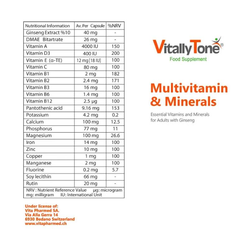 خرید کپسول مولتی ویتامین و مینرال ویتالی تون مدل Ginseng بستۀ 60 عددی