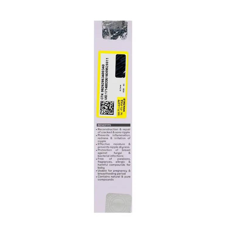 نحوه استفاده: مقداری از کرم را روی نوک سینه تمیز و خشک بمالید و به آرامی ماساژ دهید تا جذب شود. می‌توان قبل و بعد از شیردهی برای نتیجه بهتر استفاده کرد.