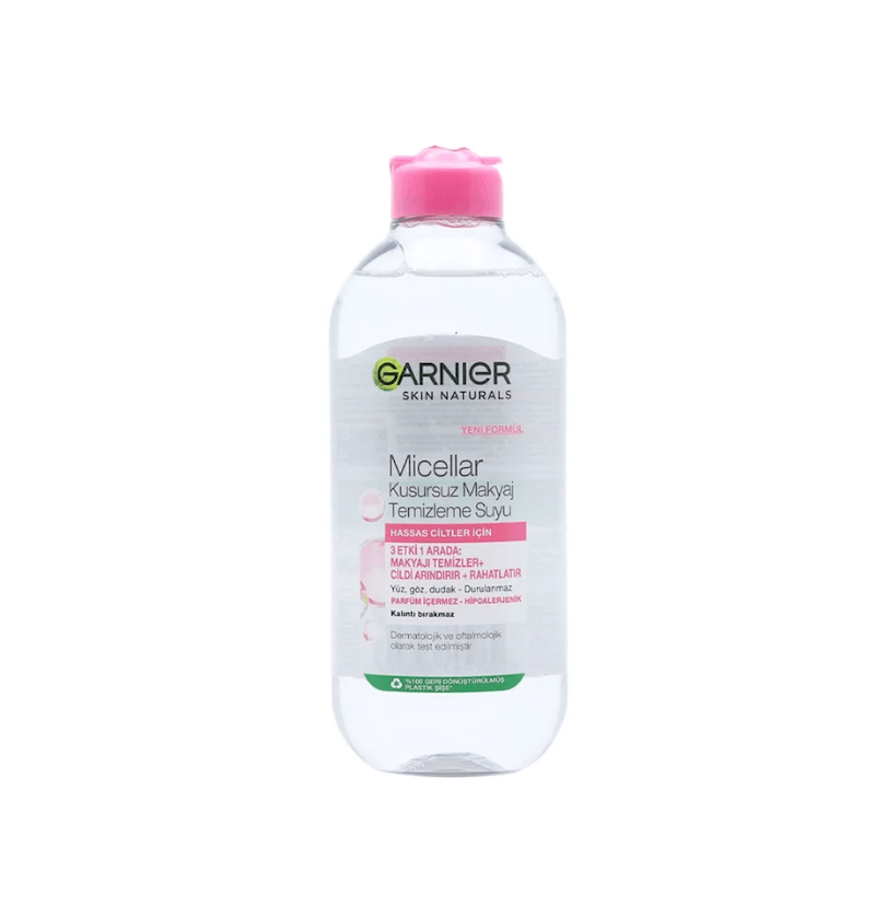 میسلار واتر گارنیر برای پوست خشک و حساس با فرمولی ملایم و بدون نیاز به آبکشی، آلودگی، آرایش و حتی آرایش چشم را بدون سایش و خشکی پاک میکند. فرمول غنیشده با گلیسرین این محصول به پوست احساس نرمی و لطافت میبخشد و تعادل رطوبتی آن را حفظ مینماید. حجم ۴۰۰ میلی لیتری آن استفادۀ مداوم را ساده و بهصرفه میسازد.