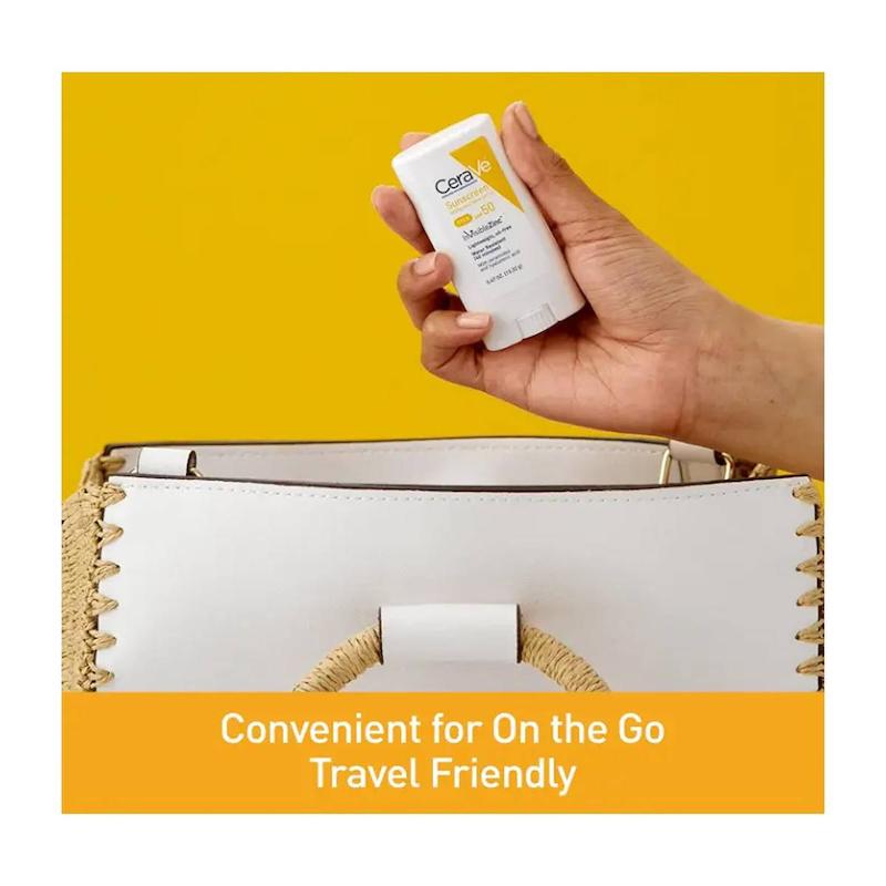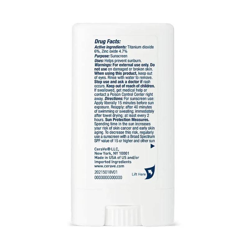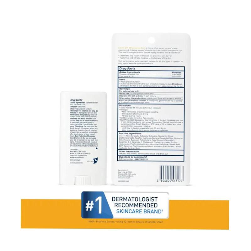 استیک ضدآفتاب CeraVe Stick SPF 50 حاوی سرامیدهای 1، 3 و 6-II است که سد دفاعی پوست را تقویت کرده و رطوبت طبیعی آن را حفظ می‌کند. همچنین نیاسینامید و اسید هیالورونیک باعث کاهش التهاب، روشن شدن پوست و حفظ نرمی و لطافت می‌شوند. توکوفرول (ویتامین E) به عنوان آنتی‌اکسیدان از پوست در برابر آسیب رادیکال‌های آزاد محافظت می‌کند. این محصول غیر کومدون‌زا است و برای پوست‌های مستعد آکنه مناسب بوده و منافذ پوست را مسدود نمی‌کند.