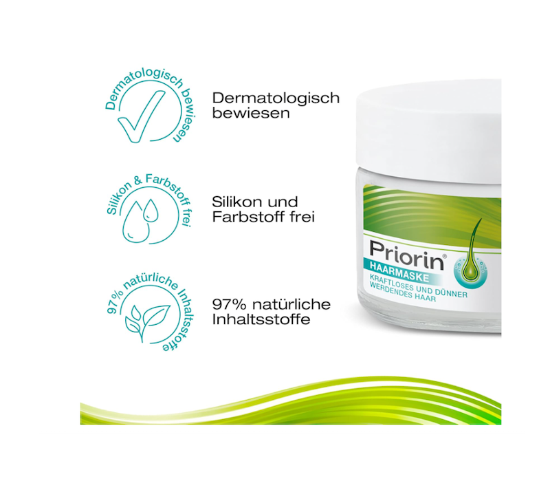 ماسک تغذیهکننده و تقویتکنندۀ مو پریورین Priorin مدل Haarmaske محصولی تخصصی از برند پریورین Priorin و شرکت بایر آلمان است که برای مراقبت از موهای نازک، ضعیف و در معرض ریزش طراحی شده است. این ماسک با ترکیب مؤثر Baicapil® Complex شامل عصاره ریشه بایکال، جوانه گندم و سویا، به تقویت فولیکول مو کمک کرده و از ریزش زودرس جلوگیری میکند. وجود بیوتین در فرمول این ماسک، نقش مهمی در حمایت از رشد سالم موها دارد و به بهبود استحکام تار مو کمک میکند.