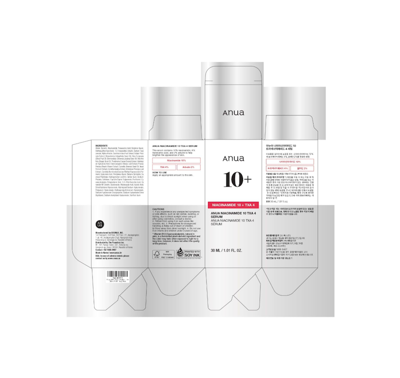 ترانگزامیک اسید ۴٪ در فرمول سرم Anua یکی از قویترین ترکیبات ضد لک محسوب میشود که با مهار تولید رنگدانههای اضافه، از ایجاد لک جدید جلوگیری کرده و به مرور زمان تیرگیهای ناشی از آفتاب، جای جوش، اسکار، لکههای هورمونی و کدری پوست را کاهش میدهد. این ترکیب در کنار نیاسینامید، پوستی یکدستتر، شفافتر و روشنتر ایجاد میکند.