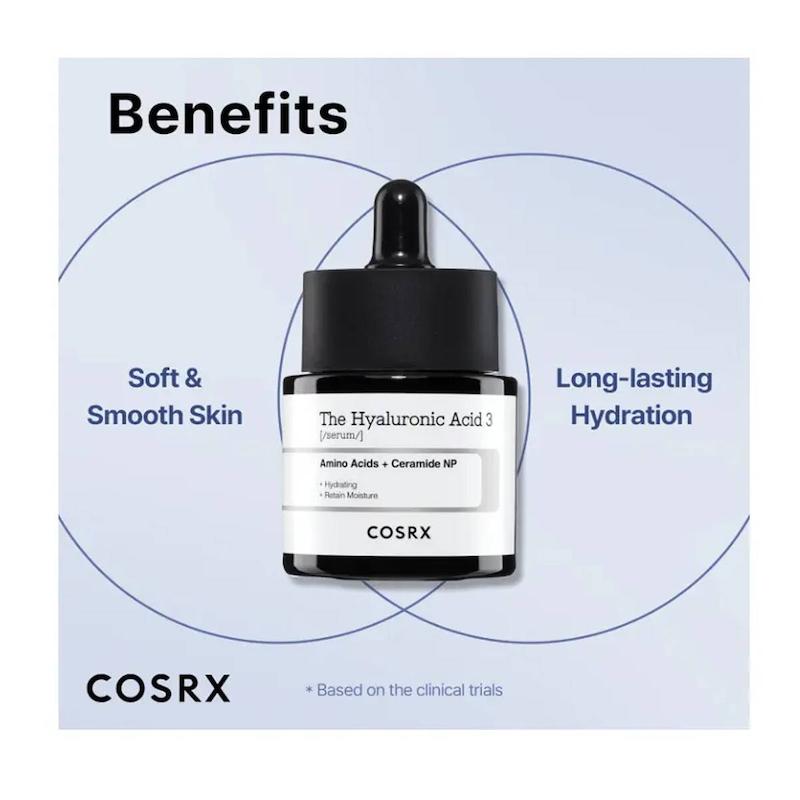 در کنار هیالورونیک اسید ۳٪، وجود Ceramide NP موجب تقویت سد پوستی و جلوگیری از تبخیر رطوبت میشود، در حالی که آمینواسیدها و ترکیباتی چون پانتنول، بتائین و آلانتوئین، خاصیت تسکیندهندگی و ضدالتهاب را به محصول میافزایند. این ترکیب به پوست کمک میکند تا پس از اولین استفاده احساس نرمی، حجمدار شدن و کاهش خشکی داشته باشد. سرم هیالورونیک اسید کوزارکس همچنین برای کاهش خطوط ریز ناشی از کمآبی پوست و افزایش انعطافپذیری سطح پوست بسیار مؤثر است.