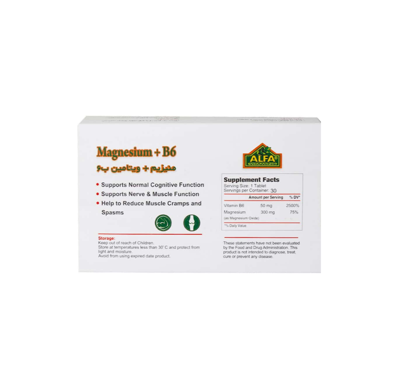 خرید منیزیم و ویتامین ب6 آلفا ویتامینز بستۀ 30 عددی