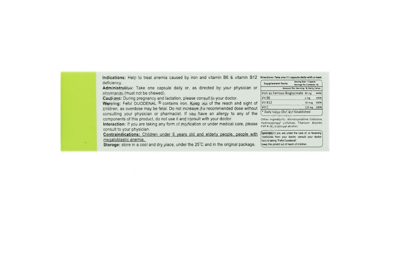 کپسول ففول دئودنال اینترافارم مکملی حاوی آهن و اسید فولیک است که برای درمان و پیشگیری از کمخونی فقر آهن استفاده میشود. این محصول با فرمولاسیون ویژه، جذب بهتری در روده (دئودنوم) دارد و به بهبود سطح انرژی، کاهش خستگی و حمایت از سلامت عمومی بدن کمک میکند.
