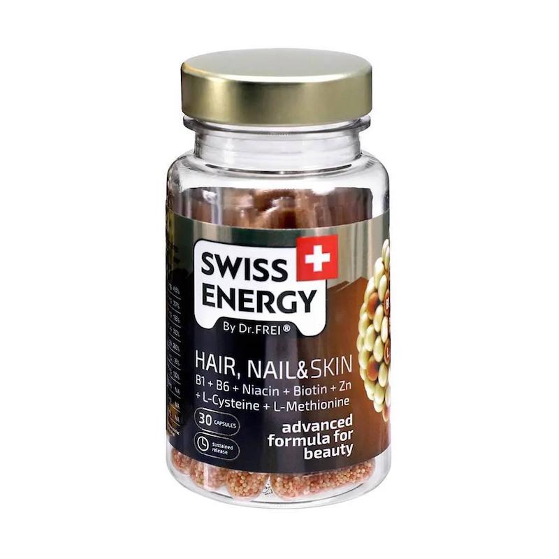 فرمول پیشرفته سوییس انرژی Swiss Energy با تأمین نیازهای تغذیهای روزانه، رشد سالم موها، افزایش استحکام ناخنها و بهبود کیفیت پوست را تسهیل میکند. ویتامینهای گروه B و ویتامین C با بهبود گردش خون در پوست سر، تغذیه فولیکولهای مو را تقویت میکنند، در حالی که ویتامین E و A با اثرات آنتیاکسیدانی، از آسیبهای سلولی ناشی از رادیکالهای آزاد محافظت میکنند. کلسیم و منیزیم نیز باعث افزایش مقاومت و استحکام ناخنها میشوند.