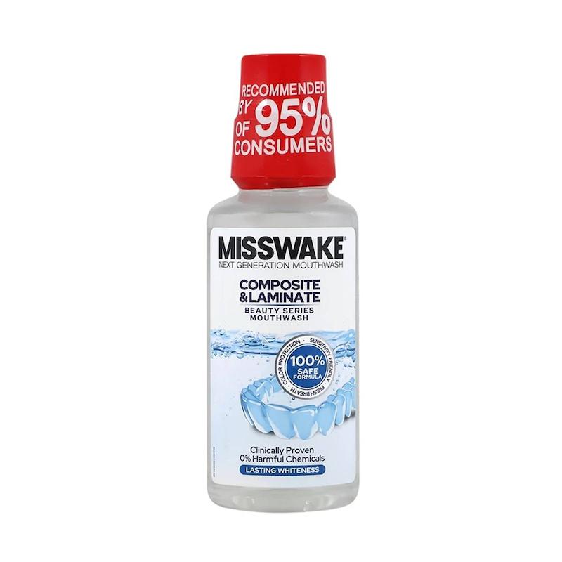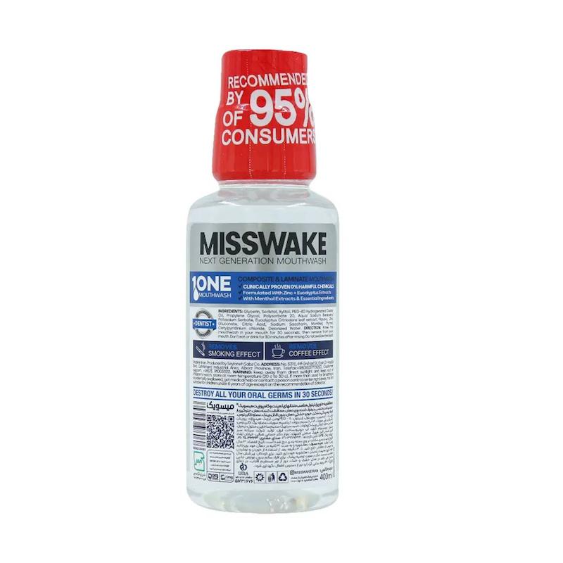 دهانشویه مخصوص دندانهای لمینت و کامپوزیت میسویک Misswake با فرمولاسیون تخصصی خود برای افرادی طراحی شده است که از روکشهای لمینت و مواد کامپوزیتی استفاده میکنند و نیاز به مراقبت روزانه دقیق دارند. این محصول با حجم ۴۰۰ میلیلیتر و بافت محلولی خود، به پیشگیری از پوسیدگی دندان، جلوگیری از تغییر رنگ روکشها و افزایش ماندگاری آنها کمک میکند. در دهانشویه میسویک Misswake از ترکیباتی مانند زایلیتول، عصاره اکالیپتوس، منتول، زینک گلوکونات و ستیل پیریدینیوم کلراید استفاده شده که هرکدام نقش مهمی در حفظ بهداشت دهان دارند. زایلیتول با جلوگیری از تشکیل جرم و پلاک، مانع ایجاد لکههای ناشی از نوشیدنیهای رنگی مانند قهوه و چای میشود. وجود منتول و اکالیپتوس نیز باعث ایجاد خنکی، خوشبو شدن و احساس طراوت طولانیمدت در دهان میشود.