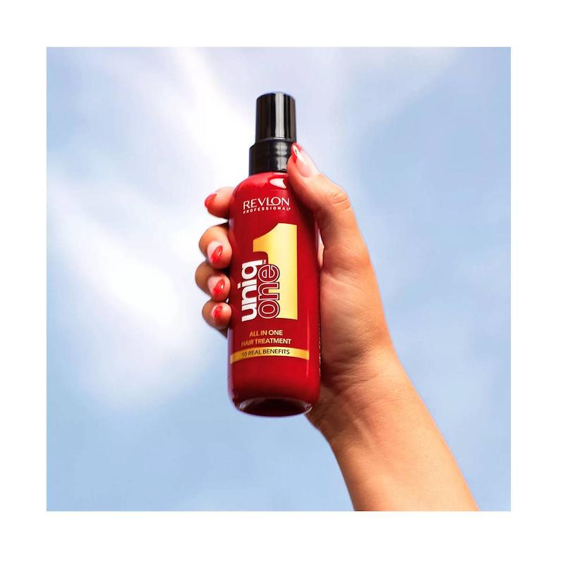 اسپری 10 کاره یونیک وان رولون (Revlon) حجم 150 میلیلیتر یک محصول چندمنظوره برای مراقبت کامل از مو است که با ترکیبی از مواد ترمیمکننده، نرمکننده و محافظتکننده، برای انواع مو بهویژه موهای آسیبدیده، رنگشده، نازک و وز مناسب است. این اسپری که با عنوان «اسپری 10 کاره» یا «اسپری چندکاره مو» شناخته میشود، بافتی سبک دارد و بدون ایجاد چربی یا سنگینی، تمام نیازهای اساسی مو را در یک محصول برطرف میکند.