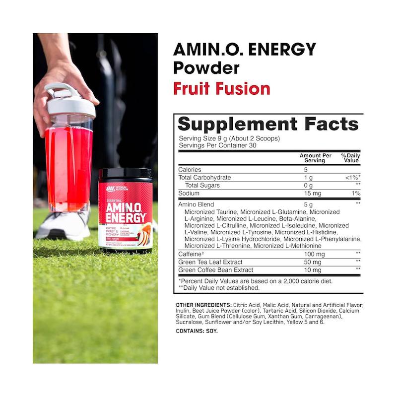 پودر آمینو انرژی اپتیموم نوتریشن (ON Amino Energy) با طعم ترکیبی و میوه‌ای Fruit Fusion، تجربه‌ای خوش‌طعم و با طراوت از مصرف مکمل را فراهم می‌آورد. این محصول به‌راحتی در آب حل می‌شود و برای مصرف قبل یا حین تمرین مناسب است.