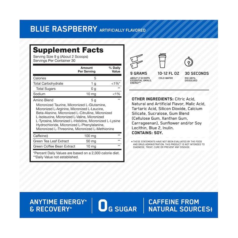 آمینو انرژی اپتیموم نوتریشن او ان مدل BLUE RASPBERRY حجم 270 گرم