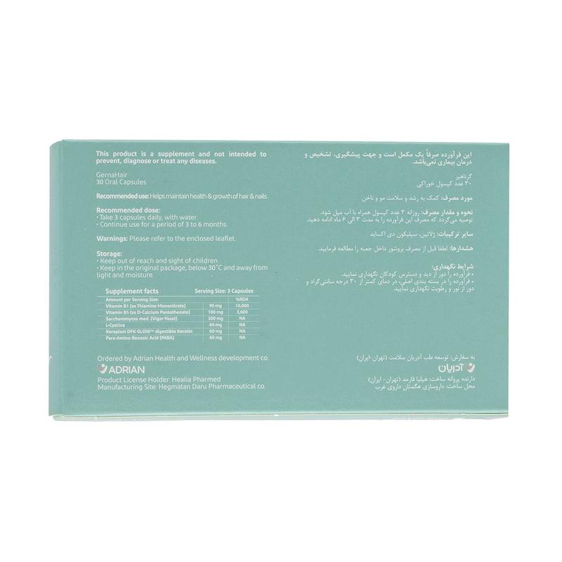 کپسول گرناهیر آدریان یک مکمل تخصصی برای تقویت مو، پوست و ناخن است؛ مخصوص افرادی که با ریزش مو، کمپشتی، شکنندگی ناخن یا سفید شدن زودرس مو درگیر هستند و میخواهند بدون مواد هورمونی، یک راهحل مؤثر و ایمن داشته باشند. این محصول با فرمولاسیون قدرتمند شامل کراتین قابلهضم، مخمر دارویی، ویتامینهای گروه B، سیستین و پابا طراحی شده تا به ریشه مو غذارسانی مستقیم انجام دهد و فولیکولها را دوباره وارد فاز رشد کند.