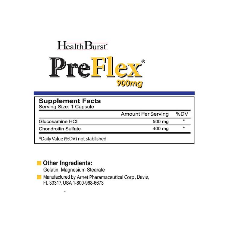 کپسول پریفلکس هلث برست (Health Burst PreFlex) یک مکمل تخصصی برای حمایت از مفاصل و غضروفهاست که با ترکیب مؤثر گلوکزآمین (Glucosamine) و کندروئیتین (Chondroitin) به کاهش دردهای مفصلی، بهبود حرکت و جلوگیری از تخریب تدریجی غضروف کمک میکند. این محصول در ایران و تحت لیسانس Arnet Pharmaceutical آمریکا تولید میشود و بهدلیل استفاده از گلوکزآمین هیدروکلراید، کمترین عارضه گوارشی را برای مصرفکنندگان ایجاد میکند.
