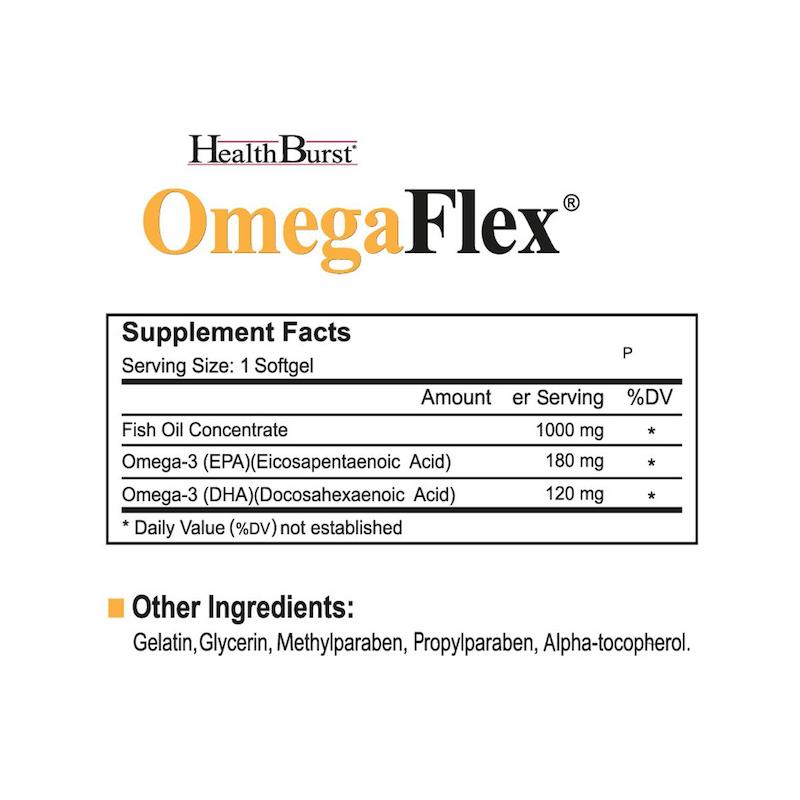 کپسول OmegaFlex هلث برست یک مکمل غذایی قدرتمند و قابل‌اعتماد برای تأمین اسیدهای چرب ضروری امگا 3 است؛ ترکیبی که بدن قادر به ساخت آن نیست اما نقشی تعیین‌کننده در سلامت قلب، مغز، بینایی و کاهش التهاب دارد. هر سافت‌ژل این محصول حاوی 1000 میلی‌گرم روغن ماهی خالص به همراه EPA (180 mg) و DHA (120 mg) است؛ دو اسید چرب کلیدی که ستون اصلی خواص درمانی امگا 3 محسوب می‌شوند.